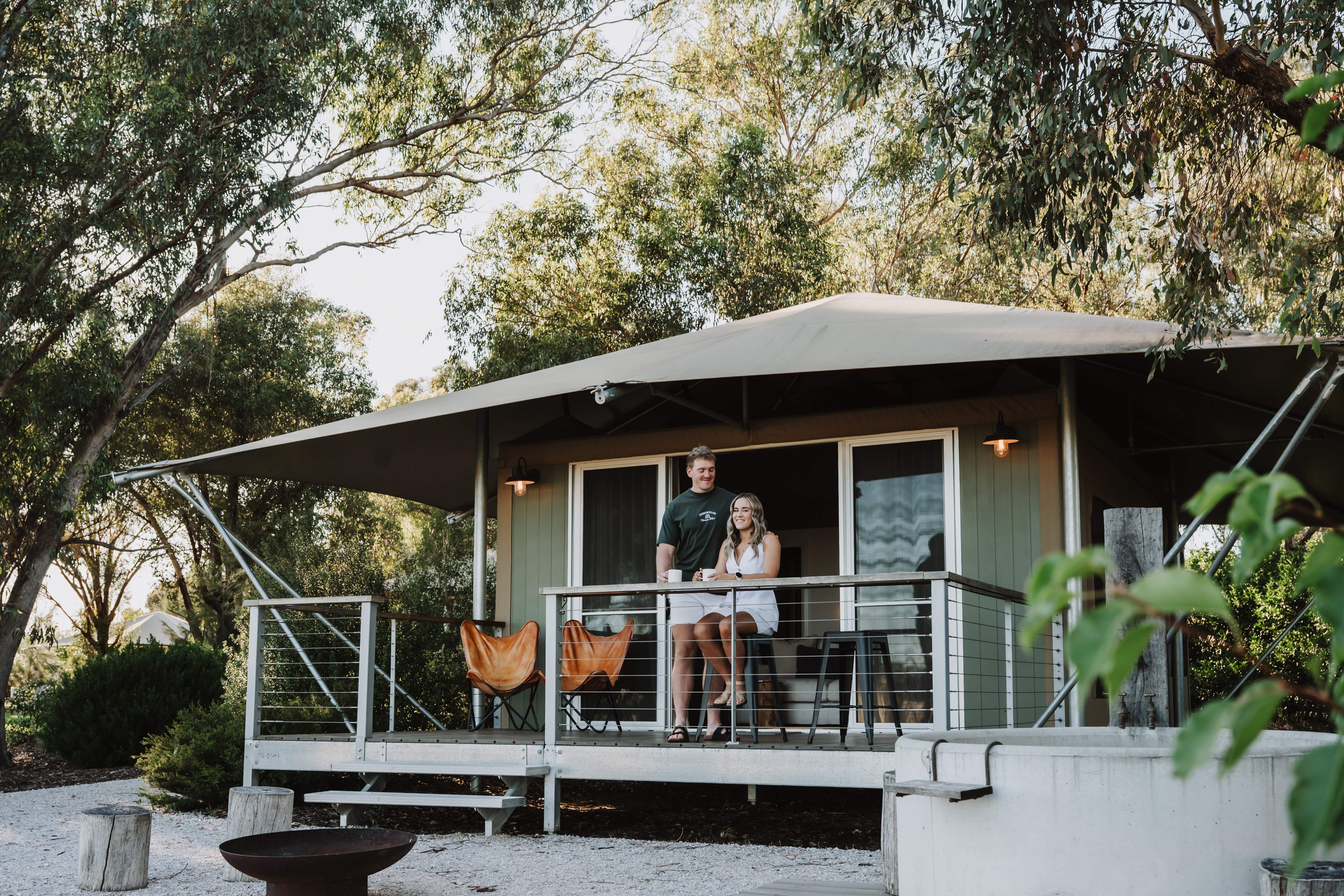 Located just minutes from town, surrounded by serene farmland and bush (and rolling hills – tick!), you’ll have a luxury eco-tent to yourselves for the night, complete with super comfy king bed, bath robes and bottle of local bubbly.