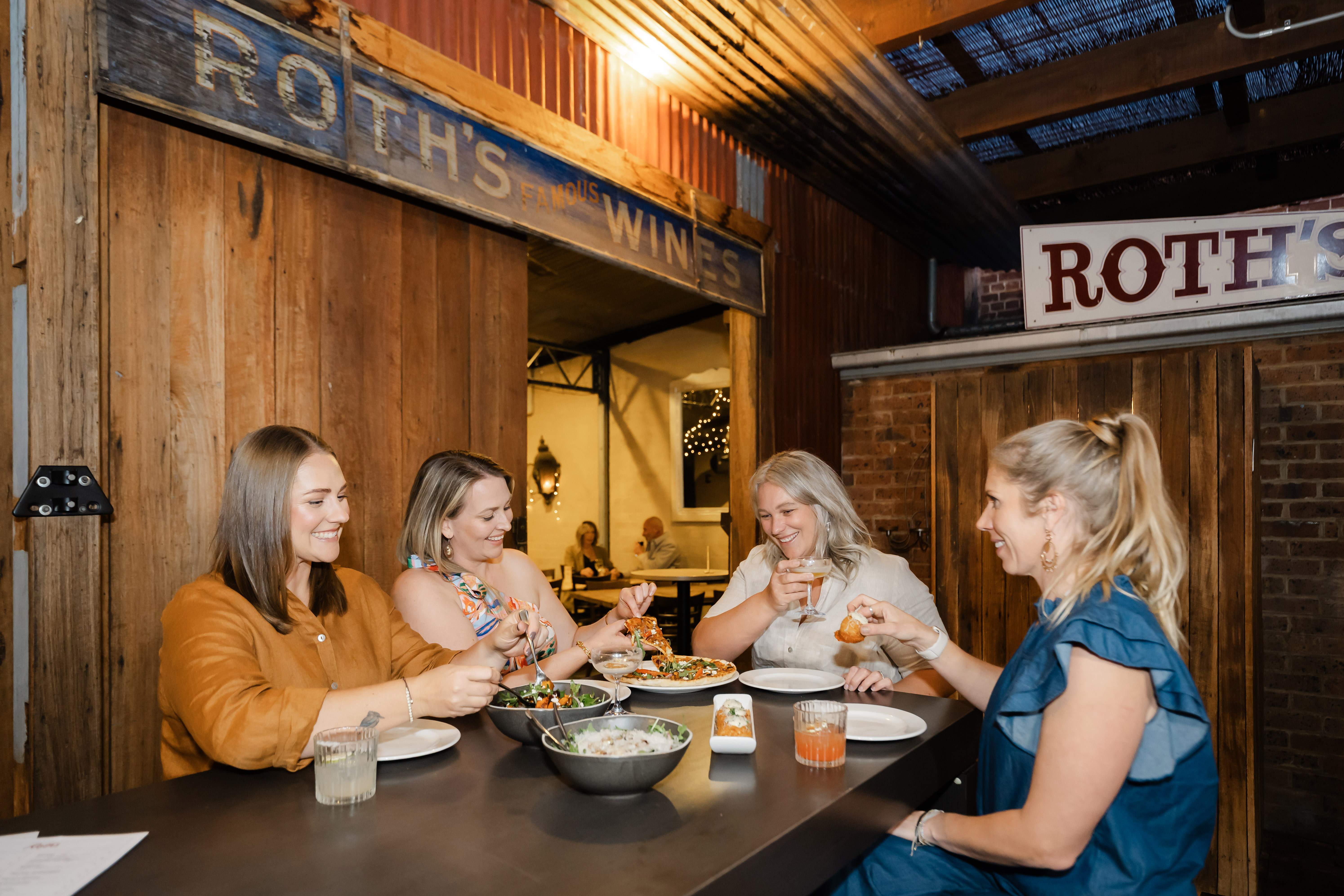 Back to town, and we’re pulling into Roth’s Wine Bar, the longest-running wine bar in NSW. Rumour has it that the art work on the front windows was painted by the local nuns, so the children from the nearby Catholic School couldn’t see into this den of sin. Oh, we’re clutching our pearls just thinking about it! Dinner is wood-fired pizza served in the courtyard, and the tastiest sides in town - the duck spring rolls are *chef’s kiss*. There’s a local muso playing covers in the shed and he somehow knows everyone’s favourite songs. We’re up on the dance floor, the shoes are off and you know sh*t is about to get real. Arms in the air, singing along - you can see how Roth’s has stayed open for a hundred years, no matter what the nuns say.